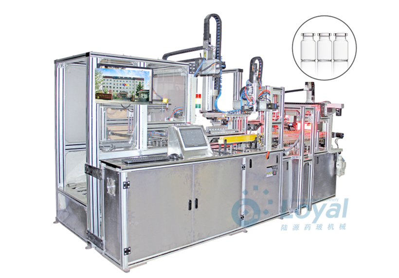 西林瓶生產線包括:自動上管、自動成型、經(jīng)機械手轉換至前端檢測線(也叫生產管控)、檢測線檢測的項目:1、瓶口內外徑 2、瓶身長短 3、瓶身外徑 4、瓶口邊厚 5、瓶底內凹尺寸檢測;經(jīng)檢測后的合格品再用機械手夾盤轉換至退火爐網(wǎng)帶上,經(jīng)高溫減除應力后再降溫,通過氣動吸盤將回火后的小瓶轉換至后端檢測線,后端檢測(也是重檢也叫終檢),經(jīng)后端拍照檢測項目